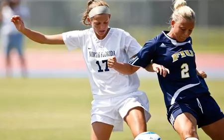 Upstate refused to go away without a fight, and with less than six minutes remaining, closed the gap to a single goal when Jaclyn Bishop scored her first goal of the season. Caitlin Beale took a shot from nearly 25 yards that headed toward the top of the net. UNF keeper Erica Lippitt deflected the ball off the crossbar and the ball returned to the field, setting up Bishop's scoring opportunity.