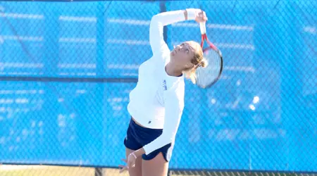 Junior Victoria Krook defeated Sarai Torres, 6-0, 6-2 in the No. 4 singles match while junior Lauren Holton picked up the 6-3, 6-0 win over I-Chun Amy Chen, 6-3, 6-0 in the No. 6 singles.